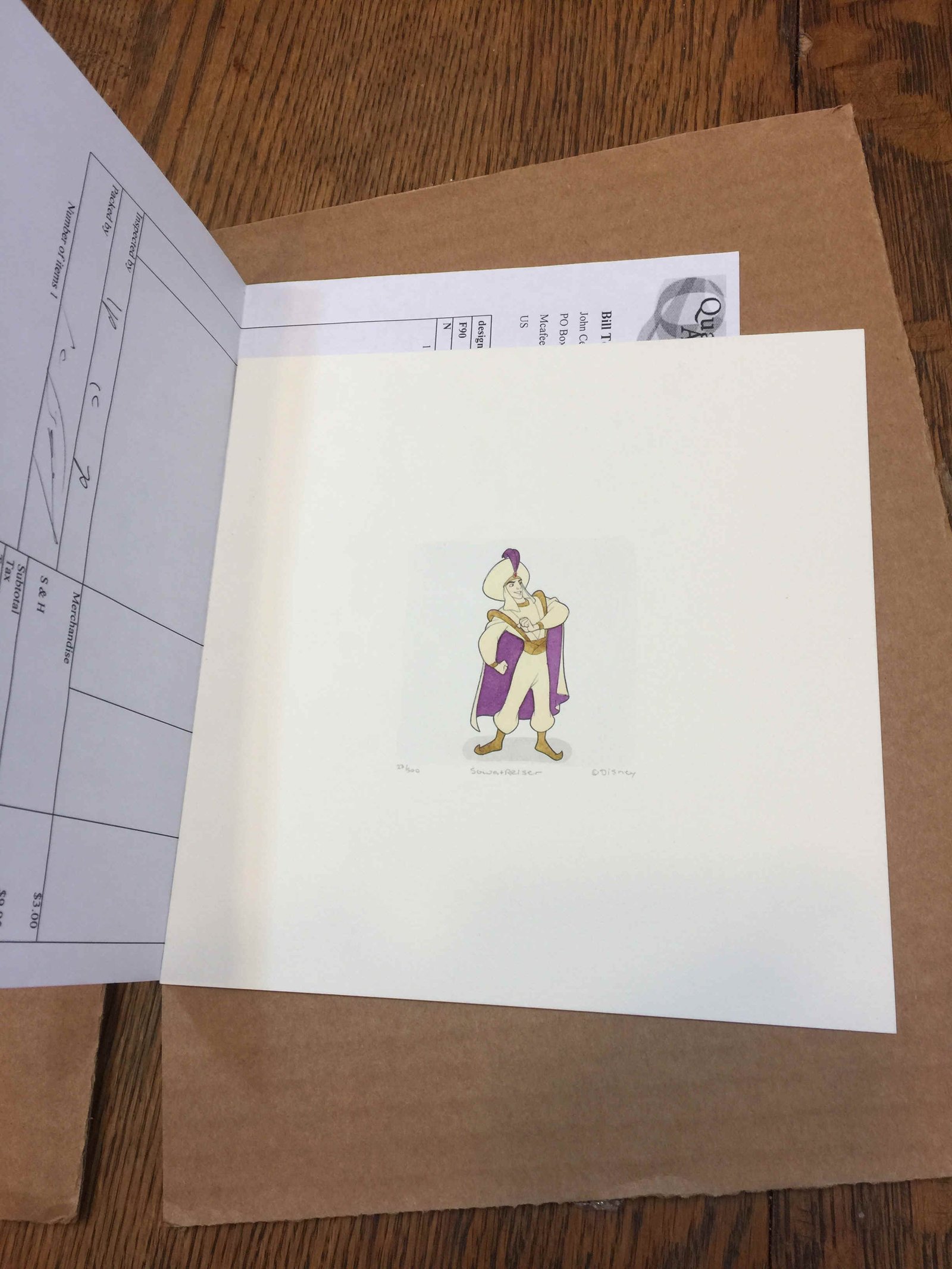 2.  Disney Aladdin Hand tinted Etching C O A Sowa and Reiser.