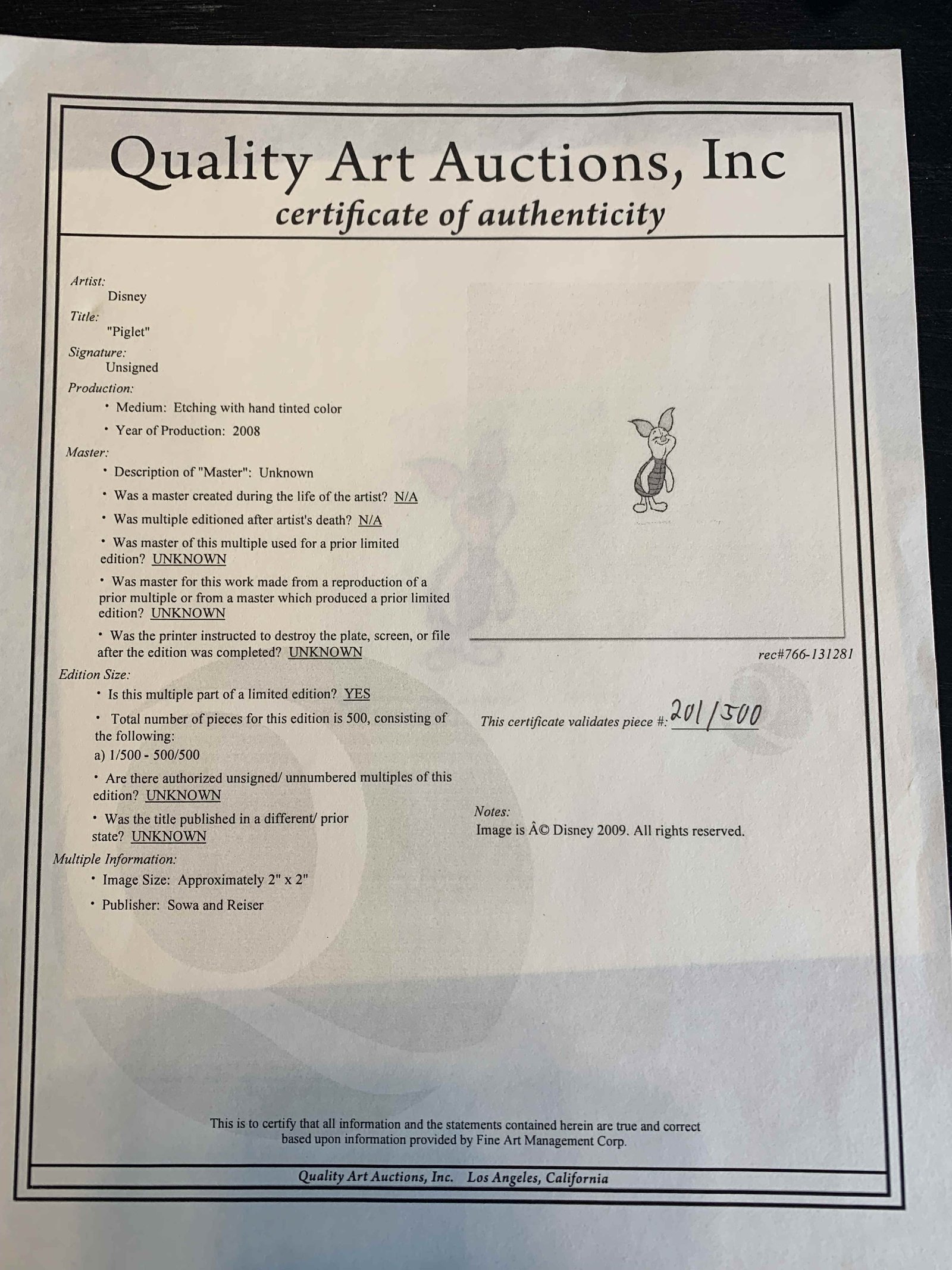 THE ART OF THE LION KING 1993 ITEMS 1 TO 4 THE MASTERPIECE THE LION KING CIRCLE OF LIFE EXCLUSIVE COMMEMORATIVE  EPIGRAPH 1995 THE MASTERPIECE THE LION KING CIRCLE OF LIFE EXCLUSIVE COMMEMORATIVE  EPIGRAPH 1995 1.  Piglet Etching with hand tinted color 2008 Disney Hand tinted Etching COA  Sowa and Reiser
