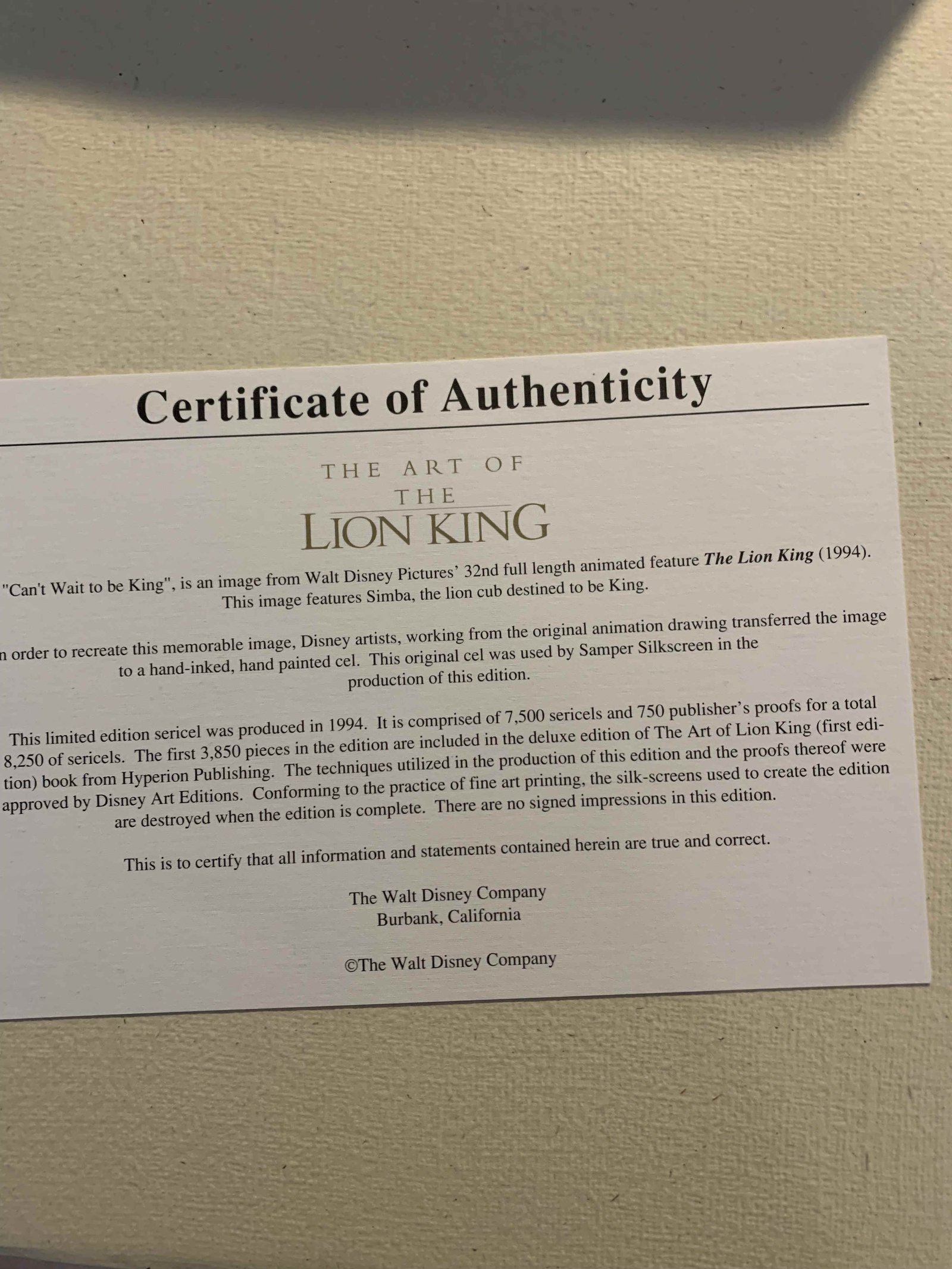 "The Art Of The Lion King" Complete Original set 1 OF 3500 copies,. This SERI CEL is included. The Text is by Christopher Finch.  sign by Director Peter Schneider,  Animation President Don Habn, Producer and Director Rob Minkoff, and Roger Allers.
