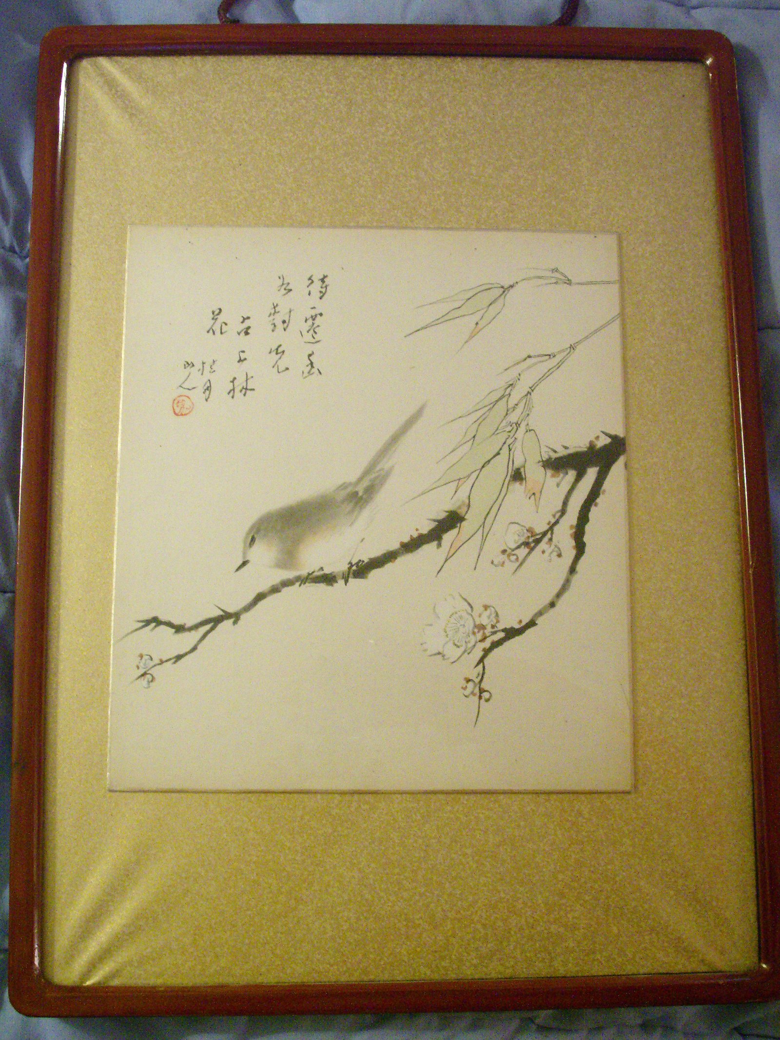 Asia bird on branch signed
