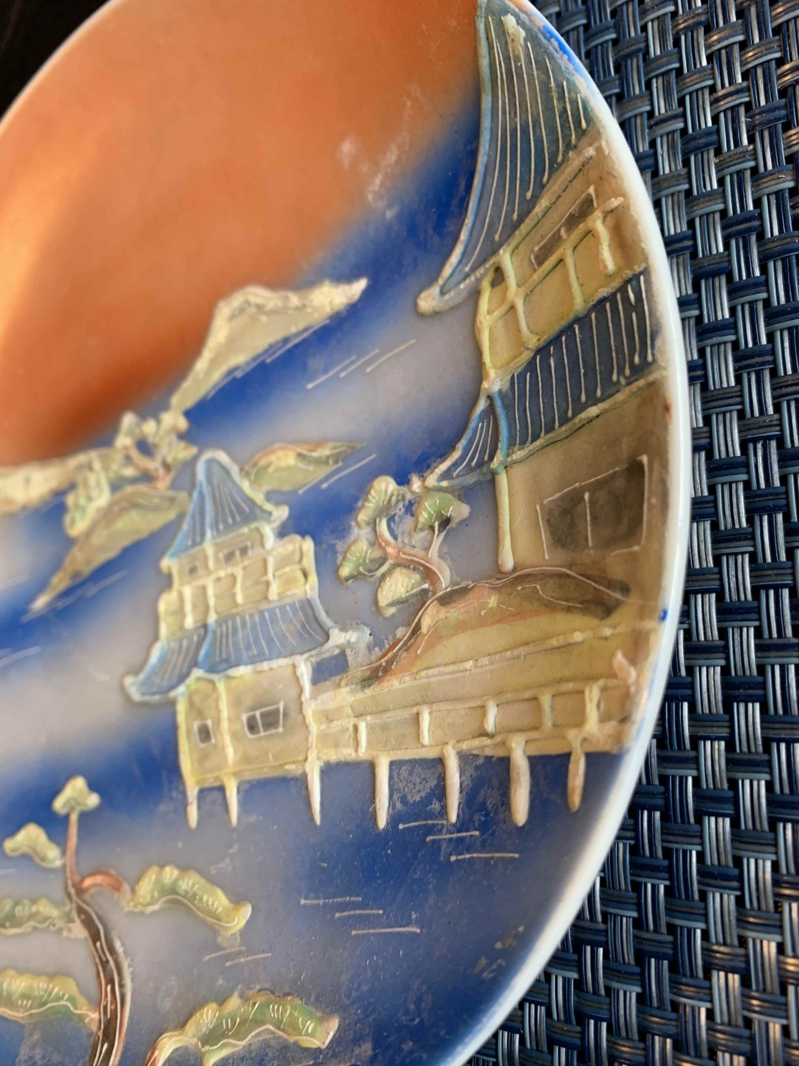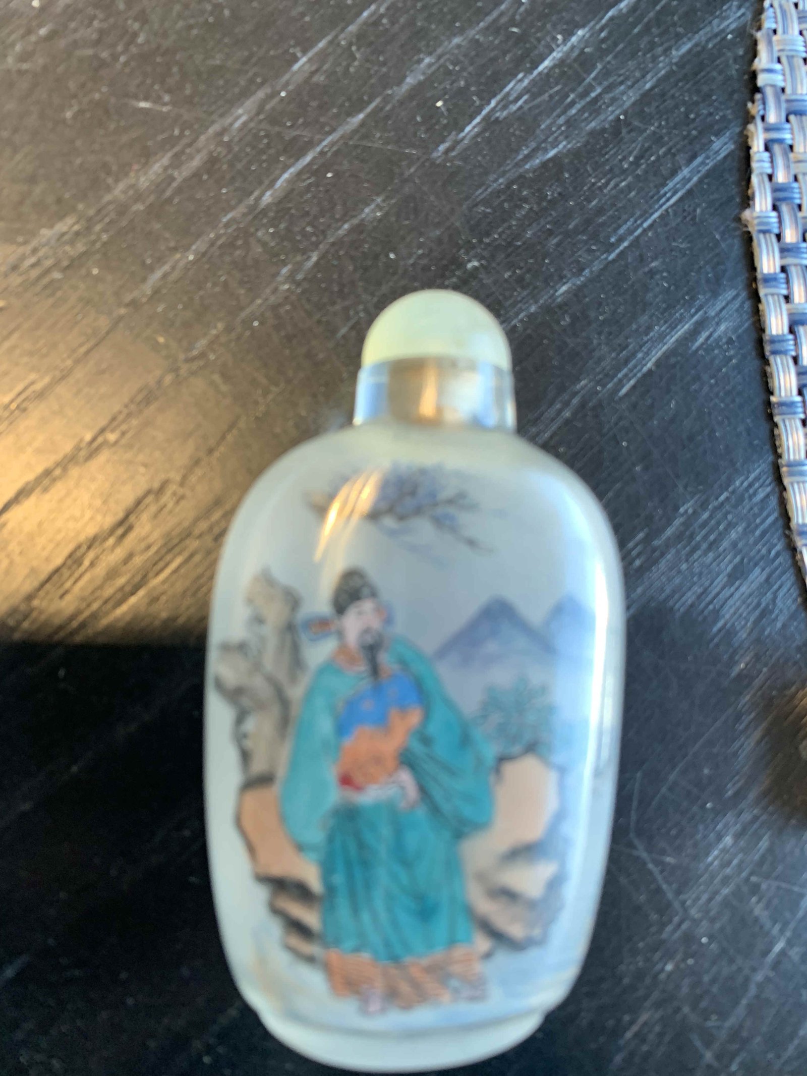 Asian Scene 3 D plate  Asian perfume bottle  Butterfly Chinese Vase hand painted signed makers mark Baoding balls possible cloisonné